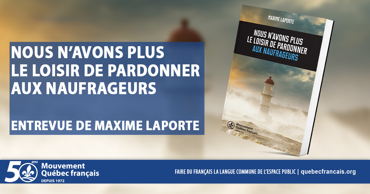 Le livre Nous n’avons plus le loisir de pardonner aux naufrageurs de Maxime Laporte, Président du Mouvement Québec français (MQF), est maintenant en vente en librairie.